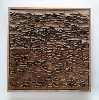 It has more to do with geology, territory, land-use planning, human relations and not forgetting the tile tradition we have. With regard to what I see on Earth, the aim is to record what catches my eye and what I would like to see continue to exist. We're successively destroying everything, we still think we're superior to all beings on earth and that's why many of the works deal with human relationships, but in a more intimate, personal way. The ceramic murals I make are based on tiles, but with volumes and without glazes. I hope you feel both well-being and discomfort in some of the works.