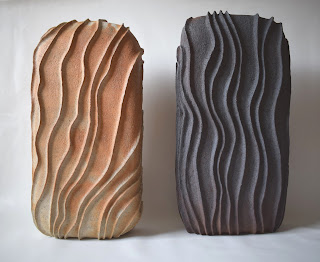 Grês, técnica do rolo, cozedura a 1200ºC em forno de lenha. 33 x 16 x 67 e 33 x 14 x 68 cm 2017