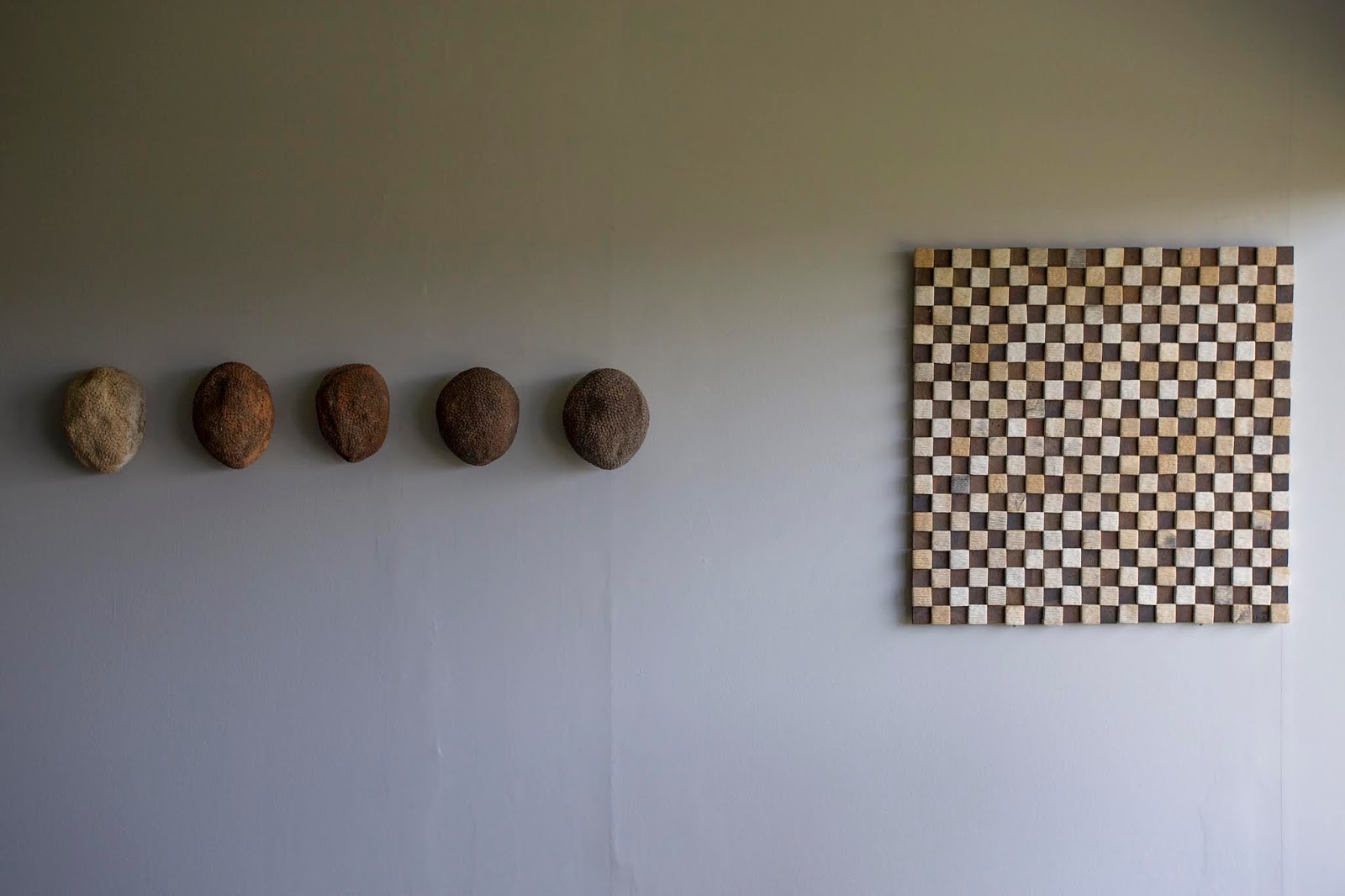 Grês, técnica do rolo e bolas, cozedura a 1100ºC em forno lenha. 27 x 17 x 155 cm. 2009