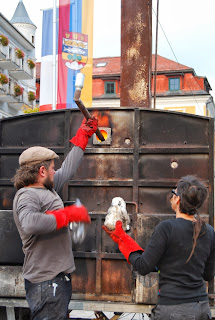 Fizemos a montagem do forno e durante toda a noite fizemos o pré-aquecimento das peças. Durante a madrugada fomos vendo também os feirantes a chegar á praça para um dia de mercado. Um dia diferente para toda a gente de Gmunden.